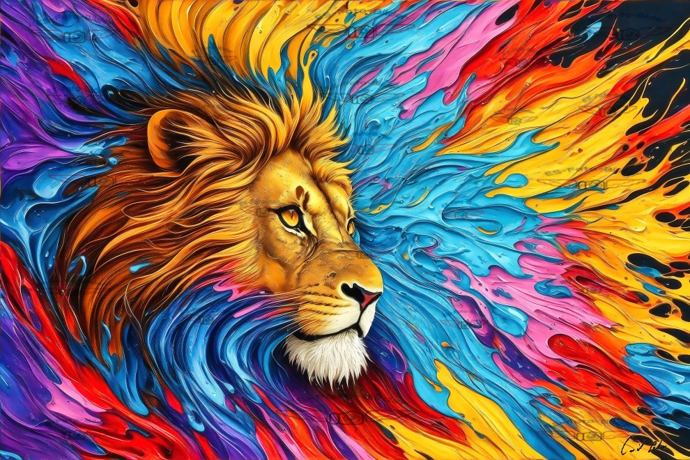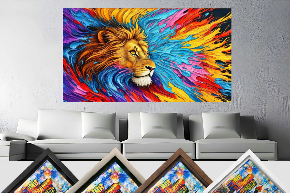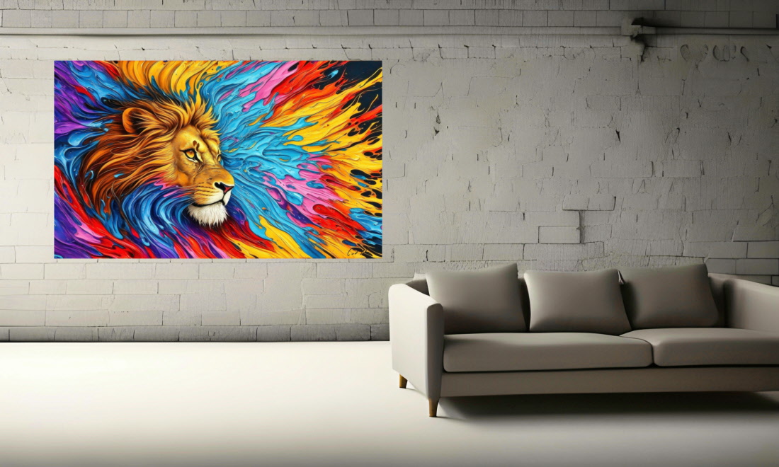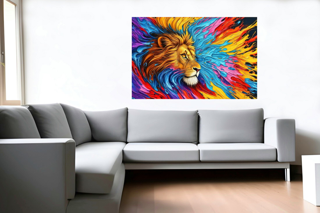 Abstraktes Pop Art Bild Löwe Wandbild als Leinwandbild oder Poster Dekoration