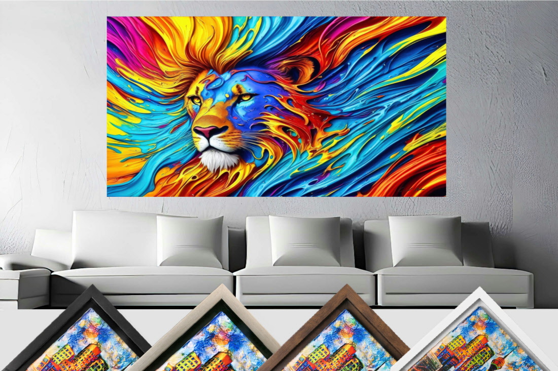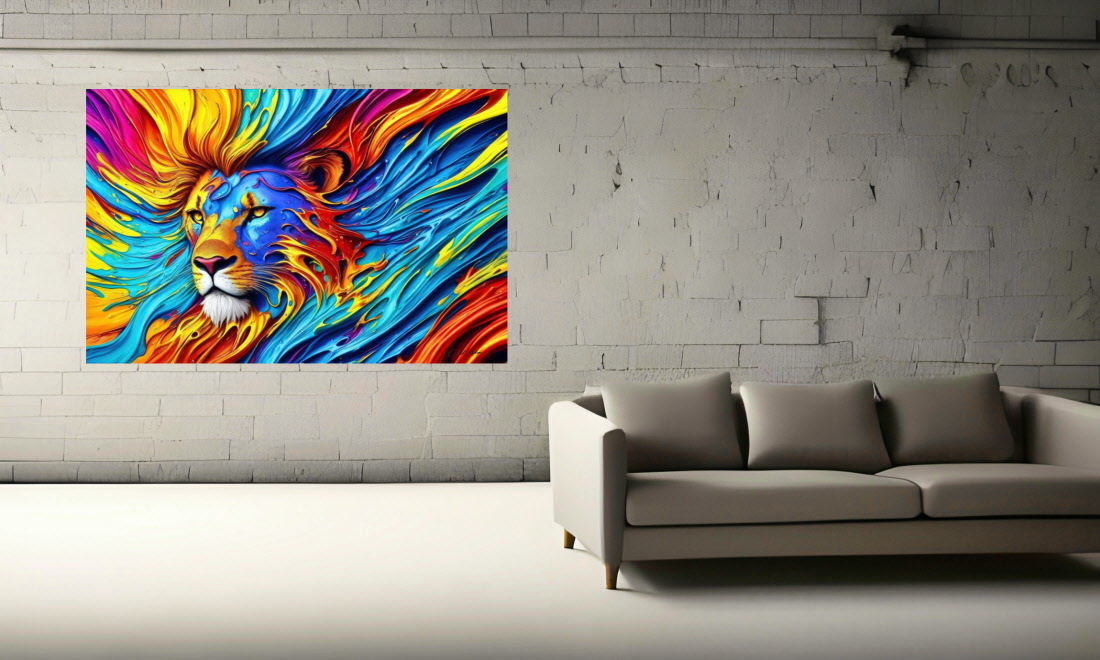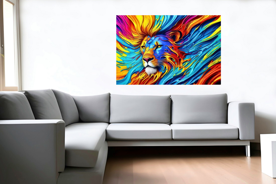 Buntes Leinwandbild oder Posterdruck Dekoration Löwe Pop Art Bild Abstrakt Wandbild Deko