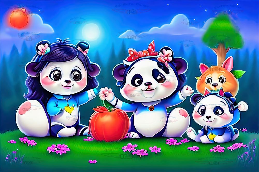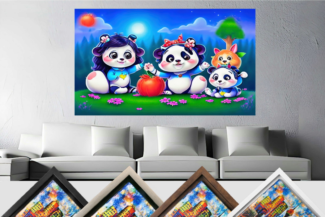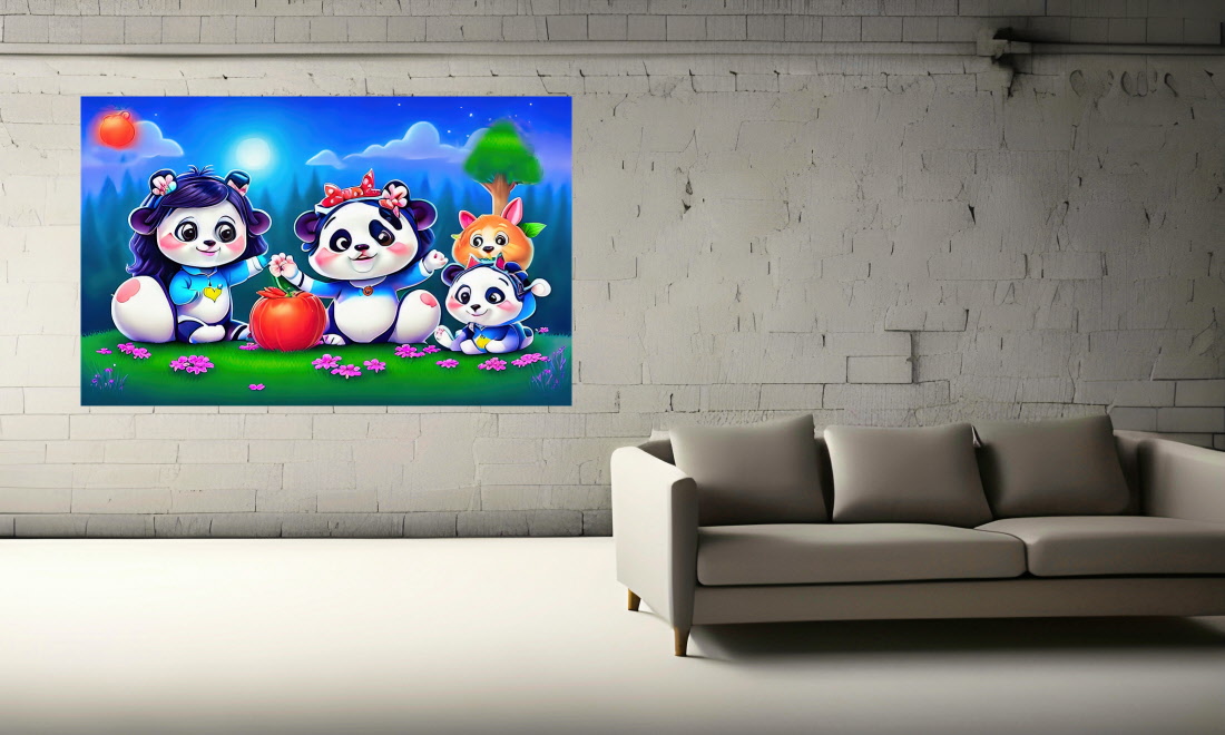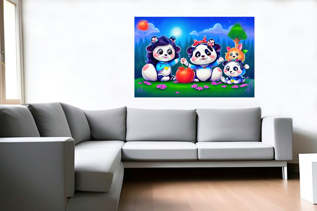 Wandbild Bild Panda Familie Pop Art Abstrakt Bunt