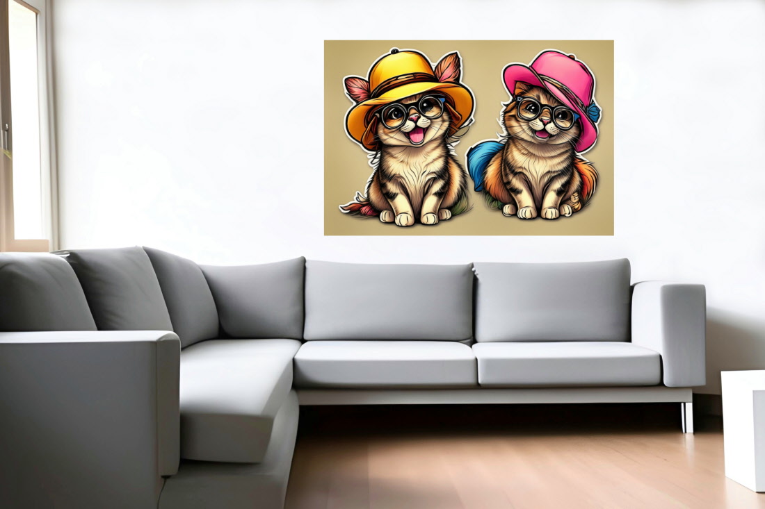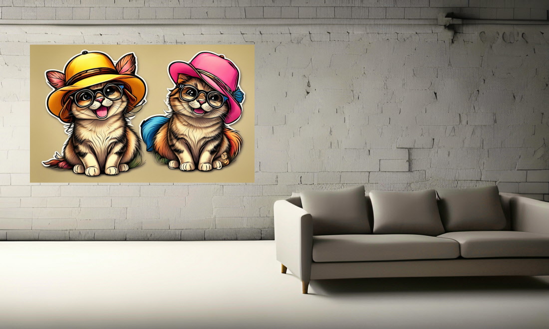 Buntes Kunst Abstrakt Pop Art Bild Katzen Wandbild Dekoration
