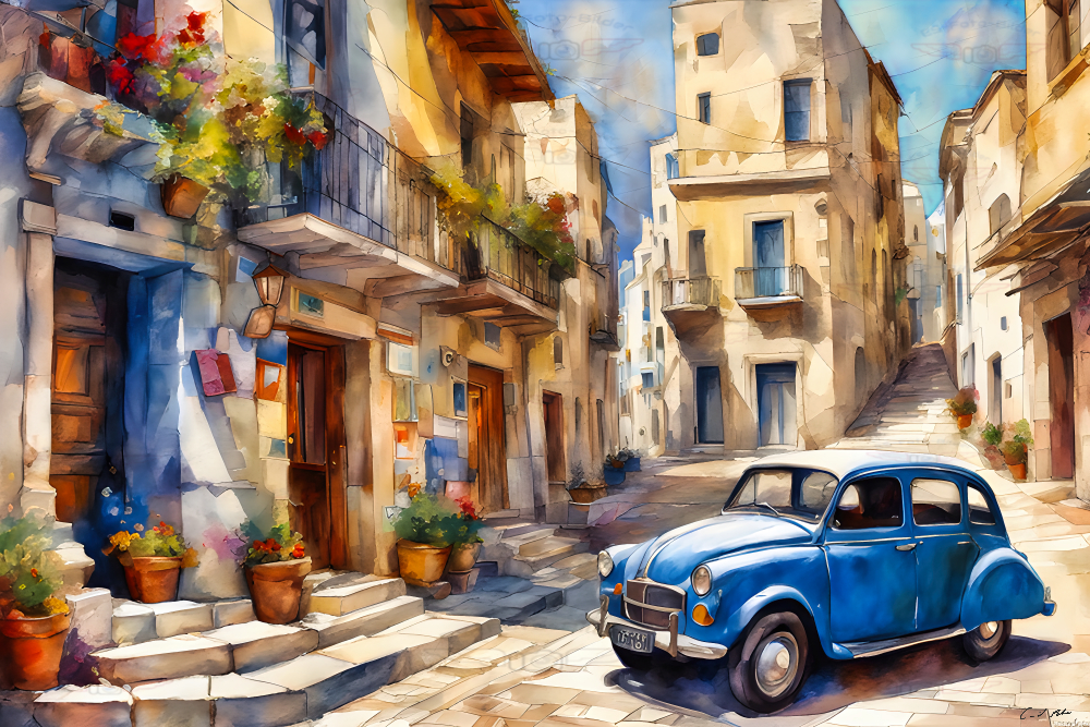 Italien Kunst Bild italienisches Dorf Bergdorf Wandbild Dekoration