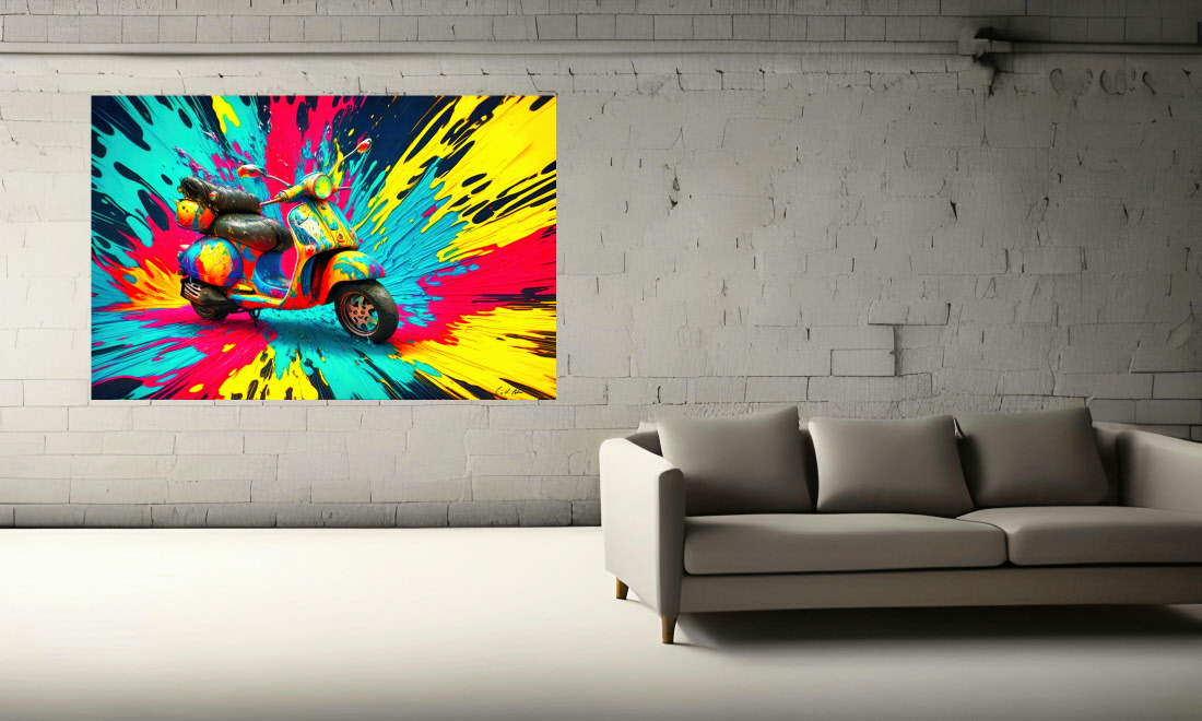 Bild Motorroller Splash Art Pop Art Oldtimer Wandbild Deko